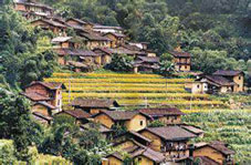 山色浅深千波翠,梯田金黄万状风;