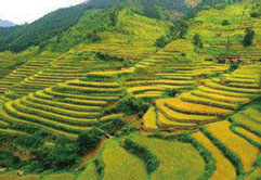 山色浅深千波翠,梯田金黄万状风;